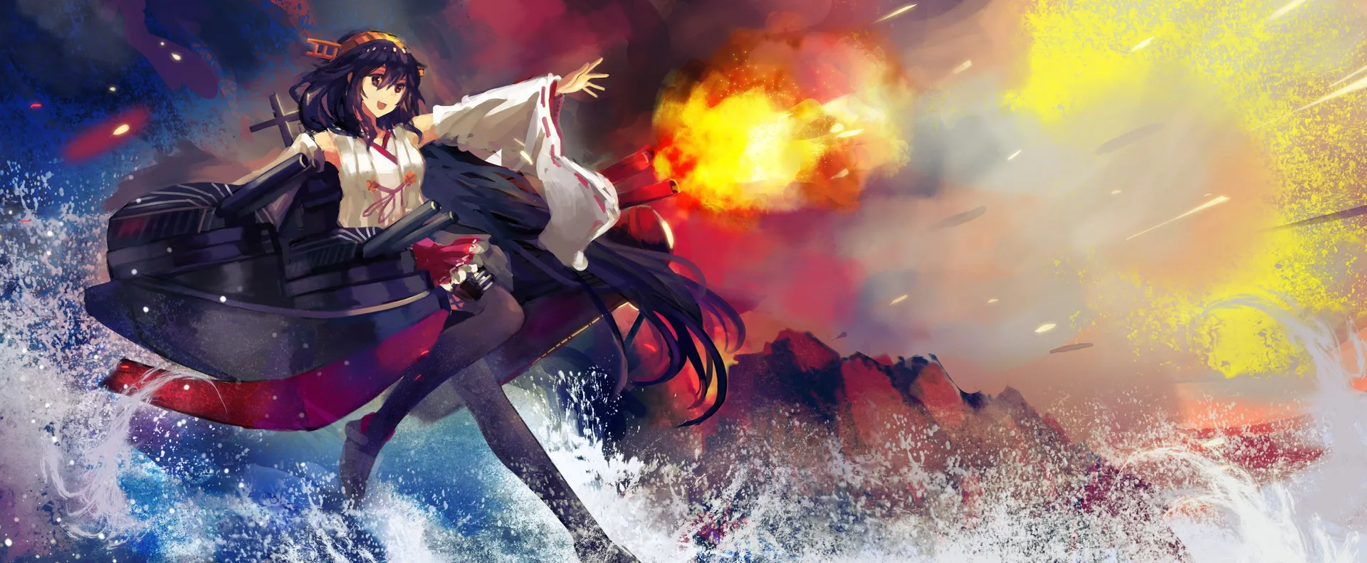Jännittävä Taistelukohtaus Kancolle Anime Taustakuvassa Taustakuvat -