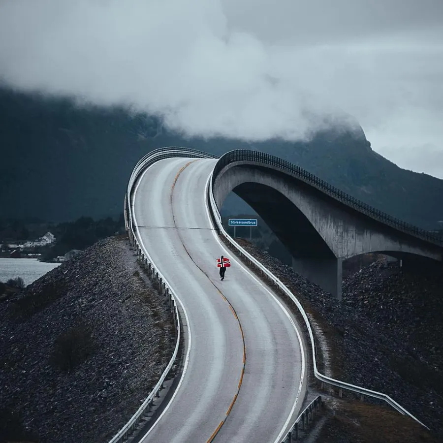 • Storseisundet-silta Vuoristonäkymällä Taustakuva